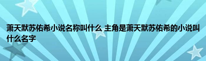 大家好,小知来为大家解答以上问题。萧天默苏佑希小说名称叫什么,主角是萧天默苏佑希的小说叫什么名字,这个很多人还不知道,现在让我们一起来看看吧!