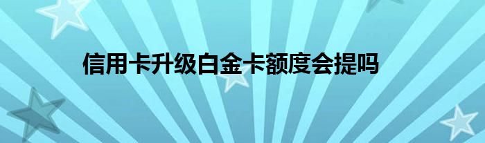 1、信用卡升级为白金卡并不会提升额度信用卡每升一级,额度都不会变化升级信用卡获得的是更高的额度上限和更多的特殊权益,而并非直接提升信用卡额度如果用户想直接提升信用卡额度,可以持本人信用卡和有效身份证件前往银行申请办理信用卡提额