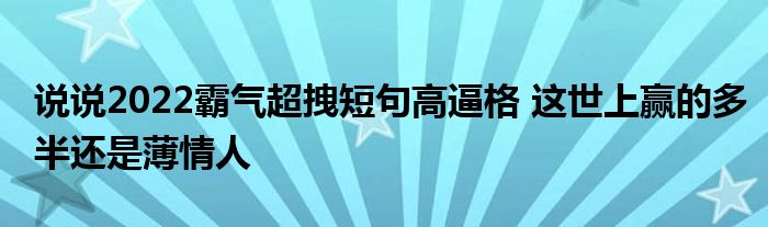 说说2022霸气超拽短句高逼格 这世上赢的多半还是薄情人