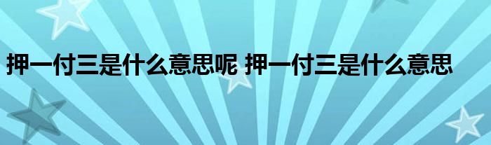 大家好,小知来为大家解答以上问题。押一付三是什么意思呢,押一付三是什么意思,这个很多人还不知道,现在让我们一起来看看吧!