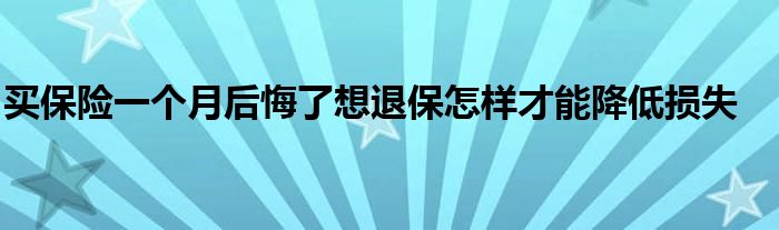 买保险一个月后悔了想退保怎样才能降低损失