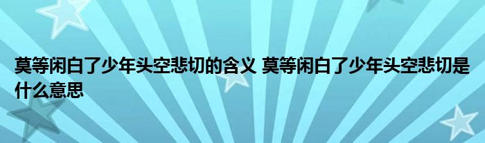 莫等闲白了少年头空悲切的含义 莫等闲白了少年头空悲切是什么意思