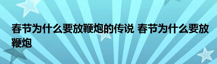 大家好,小知来为大家解答以上问题。春节为什么要放鞭炮的传说,春节为什么要放鞭炮,这个很多人还不知道,现在让我们一起来看看吧!