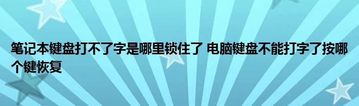 大家好,小知来为大家解答以上问题。笔记本键盘打不了字是哪里锁住了,电脑键盘不能打字了按哪个键恢复,这个很多人还不知道,现在让我们一起来看看吧!