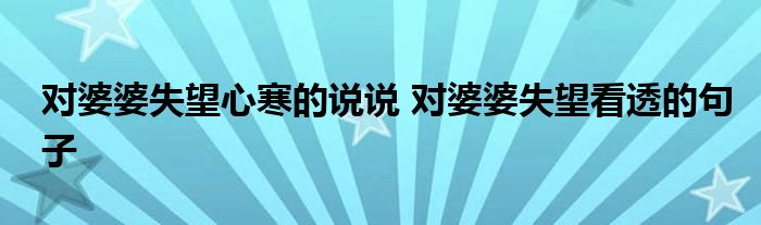 对婆婆失望心寒的说说 对婆婆失望看透的句子