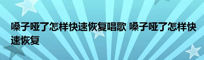 大家好,小知来为大家解答以上问题。嗓子哑了怎样快速恢复唱歌,嗓子哑了怎样快速恢复,这个很多人还不知道,现在让我们一起来看看吧!