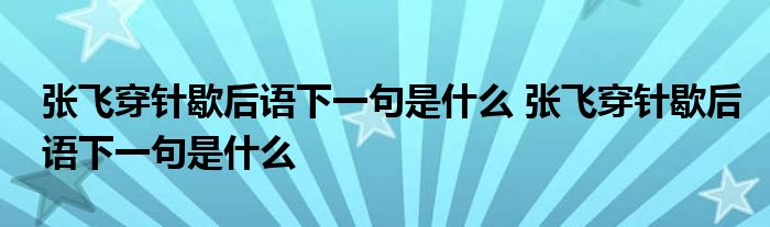 张飞穿针歇后语下一句是什么 张飞穿针歇后语下一句是什么