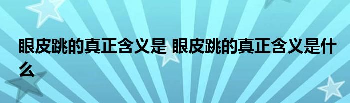 大家好,小知来为大家解答以上问题。眼皮跳的真正含义是,眼皮跳的真正含义是什么,这个很多人还不知道,现在让我们一起来看看吧!
