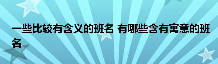 大家好,小知来为大家解答以上问题。一些比较有含义的班名,有哪些含有寓意的班名,这个很多人还不知道,现在让我们一起来看看吧!