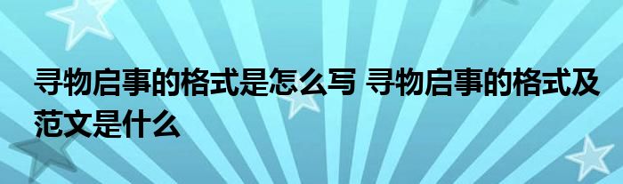 寻物启事的格式是怎么写 寻物启事的格式及范文是什么