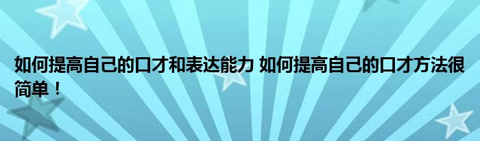 如何提高自己的口才和表达能力 如何提高自己的口才方法很简单!