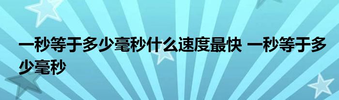一秒等于多少毫秒什么速度最快 一秒等于多少毫秒