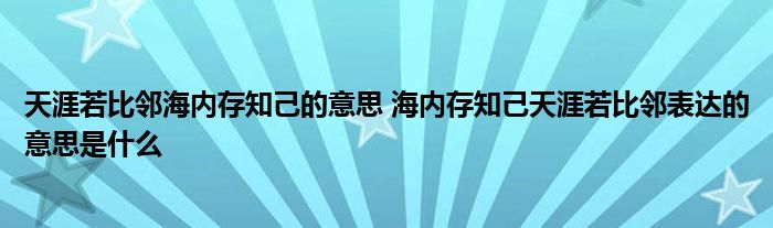 天涯若比邻海内存知己的意思 海内存知己天涯若比邻表达的意思是什么