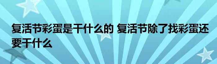 复活节彩蛋是干什么的 复活节除了找彩蛋还要干什么