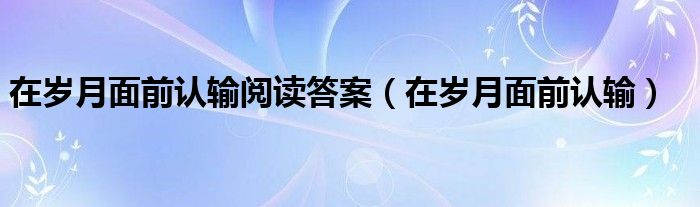 大家好,小讯来为大家解答以上的问题。在岁月面前认输阅读答案,在岁月面前认输这个很多人还不知道,现在让我们一起来看看吧!