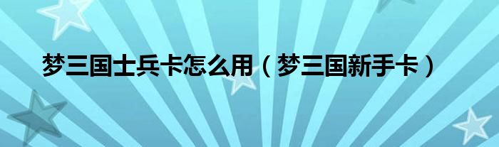 梦三国士兵卡怎么用(梦三国新手卡)