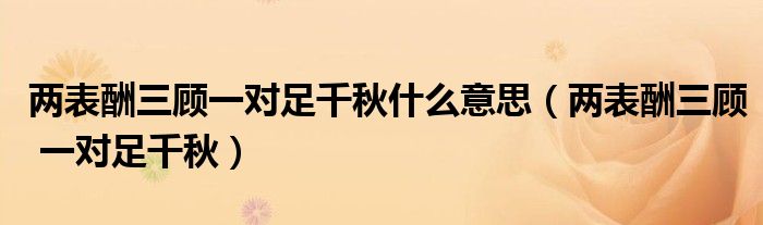 大家好,小讯来为大家解答以上的问题。两表酬三顾一对足千秋什么意思,两表酬三顾 一对足千秋这个很多人还不知道,现在让我们一起来看看吧!