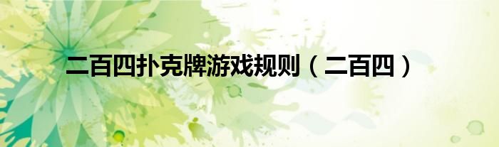 二百四扑克牌游戏规则(二百四)