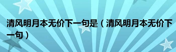 清风明月本无价下一句是(清风明月本无价下一句)