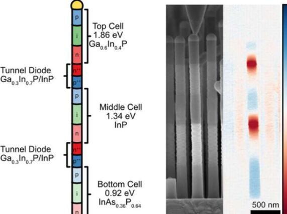 隆德大学(Lund University)的一组纳米工程研究人员去年取得了突破,他们成功地构建了具有三种不同带隙的光伏纳米线。换句话说,这意味着同一根纳米线由三种不同的材料组成,它们对太阳光的不同部分做出反应。研究结果已发表在Materials Today Energy上,随后在Nano Research上更详细地发表。
