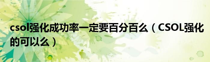 csol强化成功率一定要百分百么(CSOL强化的可以么)