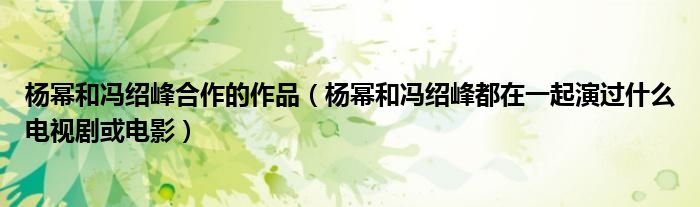 杨幂和冯绍峰合作的作品(杨幂和冯绍峰都在一起演过什么电视剧或电影)