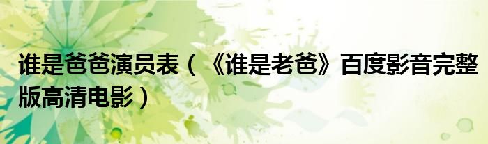 大家好,我是小小根,我来为大家解答以上问题。谁是爸爸演员表,《谁是老爸》百度影音完整版高清电影很多人还不知道,现在让我们一起来看看吧!