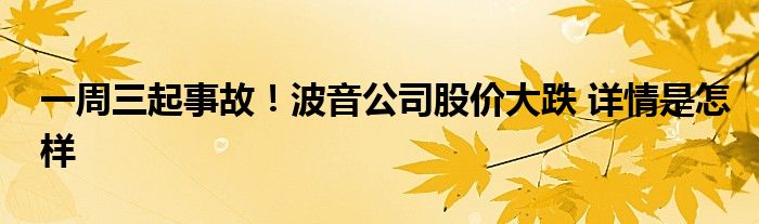 【一周三起事故!波音公司股价大跌】大家可以一起来了解一下这是什么情况!