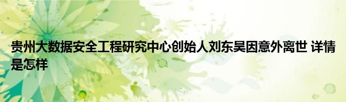 【贵州大数据安全工程研究中心创始人刘东昊因意外离世】大家可以一起来了解一下这是什么情况!