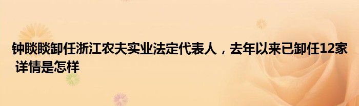 【钟睒睒卸任浙江农夫实业法定代表人,去年以来已卸任12家】大家可以一起来了解一下这是什么情况!