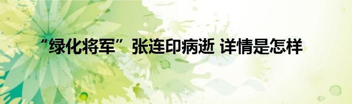 【“绿化将军”张连印病逝】大家可以一起来了解一下这是什么情况!