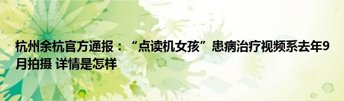 杭州余杭官方通报:“点读机女孩”患病治疗视频系去年9月拍摄 详情是怎样