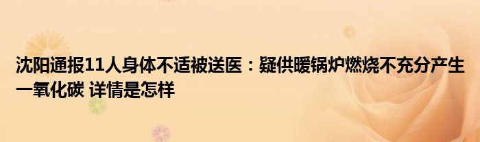 沈阳通报11人身体不适被送医:疑供暖锅炉燃烧不充分产生一氧化碳 详情是怎样