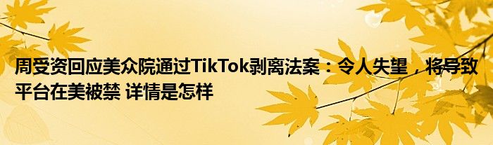 【周受资回应美众院通过TikTok剥离法案:令人失望,将导致平台在美被禁】大家可以一起来了解一下这是什么情况!