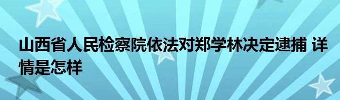 【山西省人民检察院依法对郑学林决定逮捕】大家可以一起来了解一下这是什么情况!