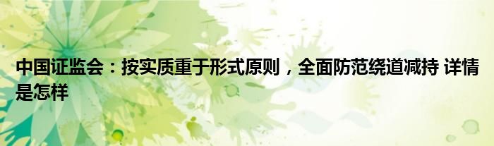 【中国证监会:按实质重于形式原则,全面防范绕道减持】大家可以一起来了解一下这是什么情况!