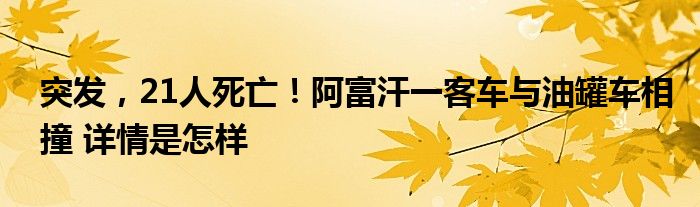 【突发,21人死亡!阿富汗一客车与油罐车相撞】大家可以一起来了解一下这是什么情况!