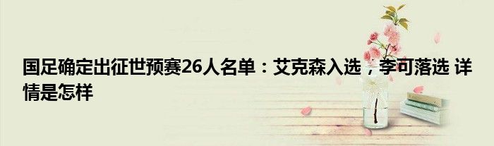 【国足确定出征世预赛26人名单:艾克森入选,李可落选】大家可以一起来了解一下这是什么情况!