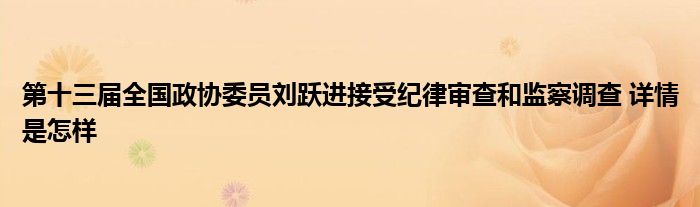 第十三届全国政协委员刘跃进接受纪律审查和监察调查 详情是怎样