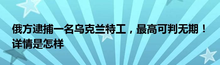 【俄方逮捕一名乌克兰特工,最高可判无期!】大家可以一起来了解一下这是什么情况!