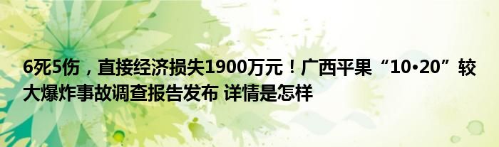 【6死5伤,直接经济损失1900万元!广西平果“10·20”较大爆炸事故调查报告发布】大家可以一起来了解一下这是什么情况!