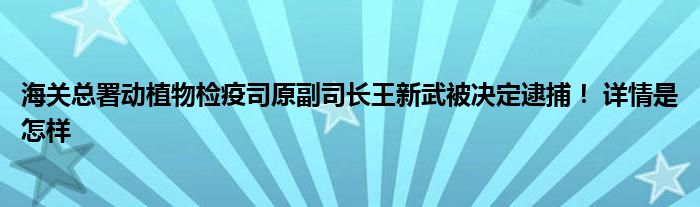 【海关总署动植物检疫司原副司长王新武被决定逮捕!】大家可以一起来了解一下这是什么情况!