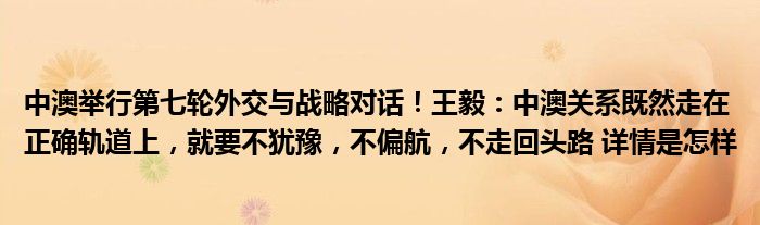 【中澳举行第七轮外交与战略对话!王毅:中澳关系既然走在正确轨道上,就要不犹豫,不偏航,不走回头路】大家可以一起来了解一下这是什么情况!
