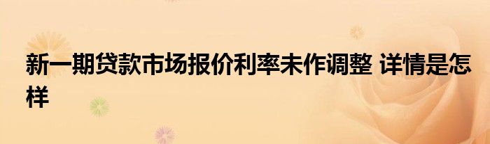 【新一期贷款市场报价利率未作调整】大家可以一起来了解一下这是什么情况!