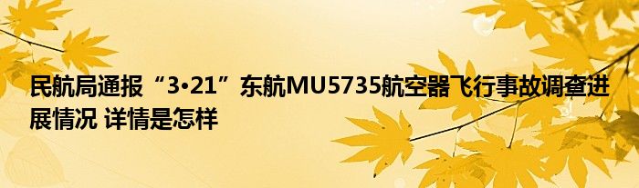 【民航局通报“3·21”东航MU5735航空器飞行事故调查进展情况】大家可以一起来了解一下这是什么情况!
