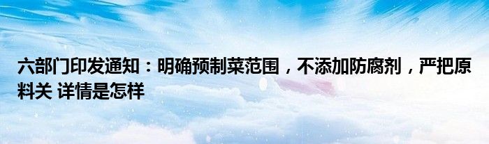 【六部门印发通知:明确预制菜范围,不添加防腐剂,严把原料关】大家可以一起来了解一下这是什么情况!