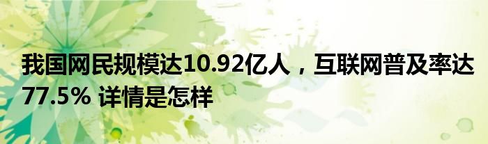 【我国网民规模达10.92亿人,互联网普及率达77.5%】大家可以一起来了解一下这是什么情况!