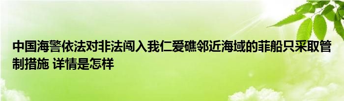 中国海警依法对非法闯入我仁爱礁邻近海域的菲船只采取管制措施 详情是怎样