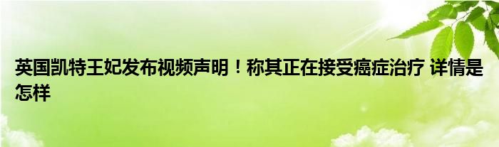 【英国凯特王妃发布视频声明!称其正在接受癌症治疗】大家可以一起来了解一下这是什么情况!