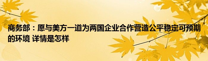【商务部:愿与美方一道为两国企业合作营造公平稳定可预期的环境】大家可以一起来了解一下这是什么情况!